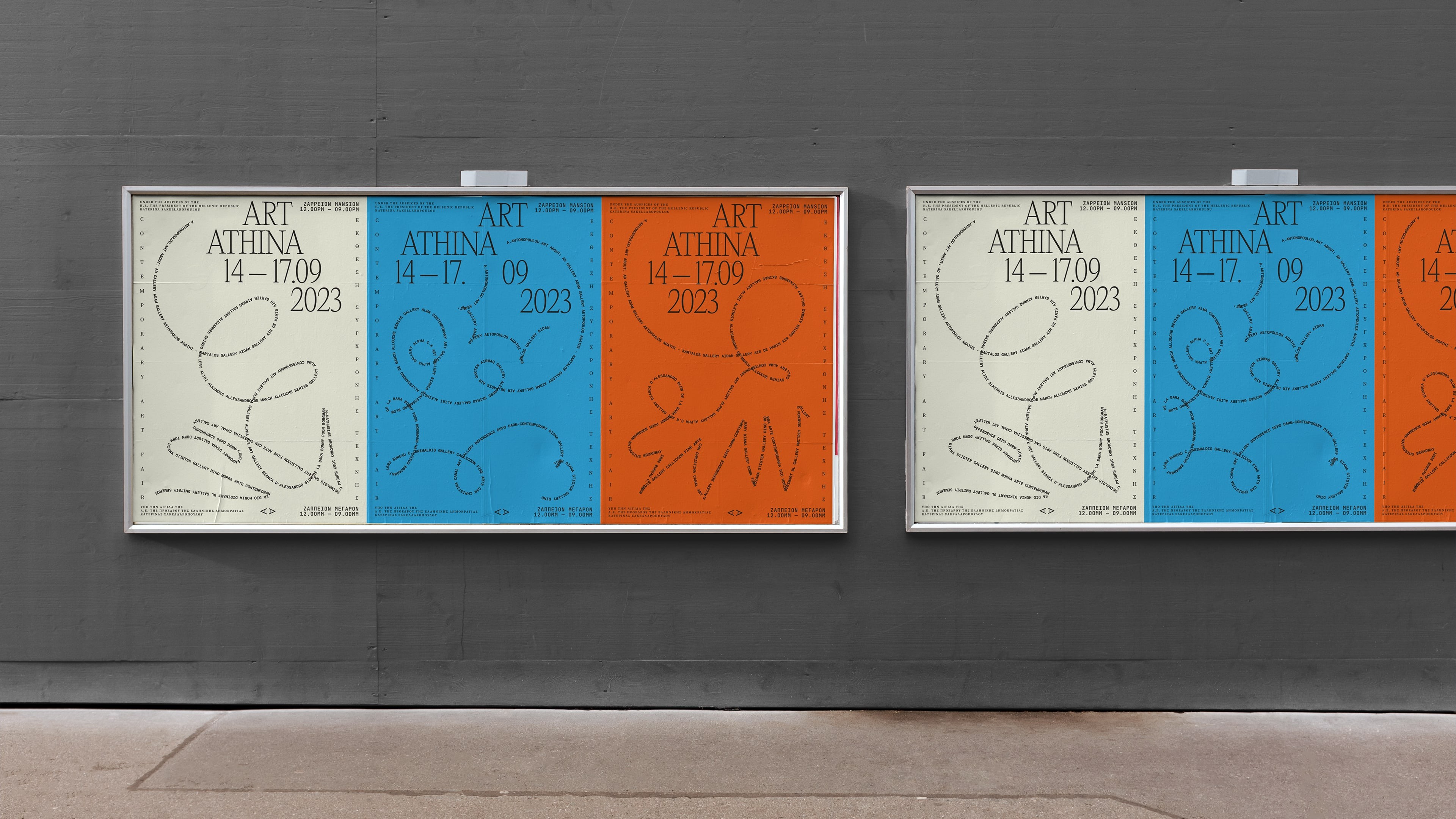 The 2023 edition of Art Athina, Athens’ flagship international art fair, unfolds through a visual identity that balances bold typography with a vibrant, context-driven color palette. The design translates the rhythm of visitors’ exploration into typographic movement, tracing pathways across printed catalogs and digital materials, while maintaining clarity and legibility throughout.