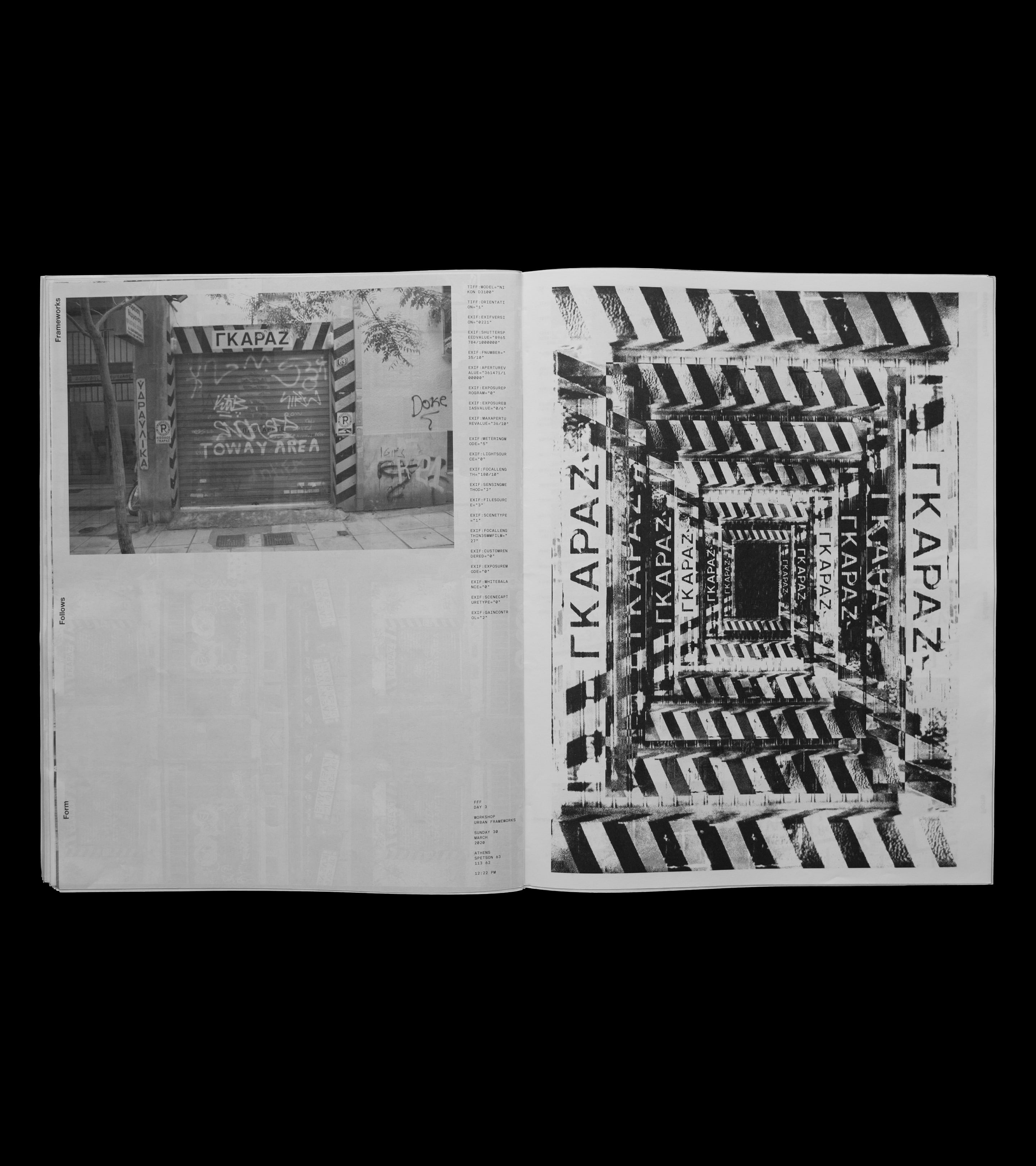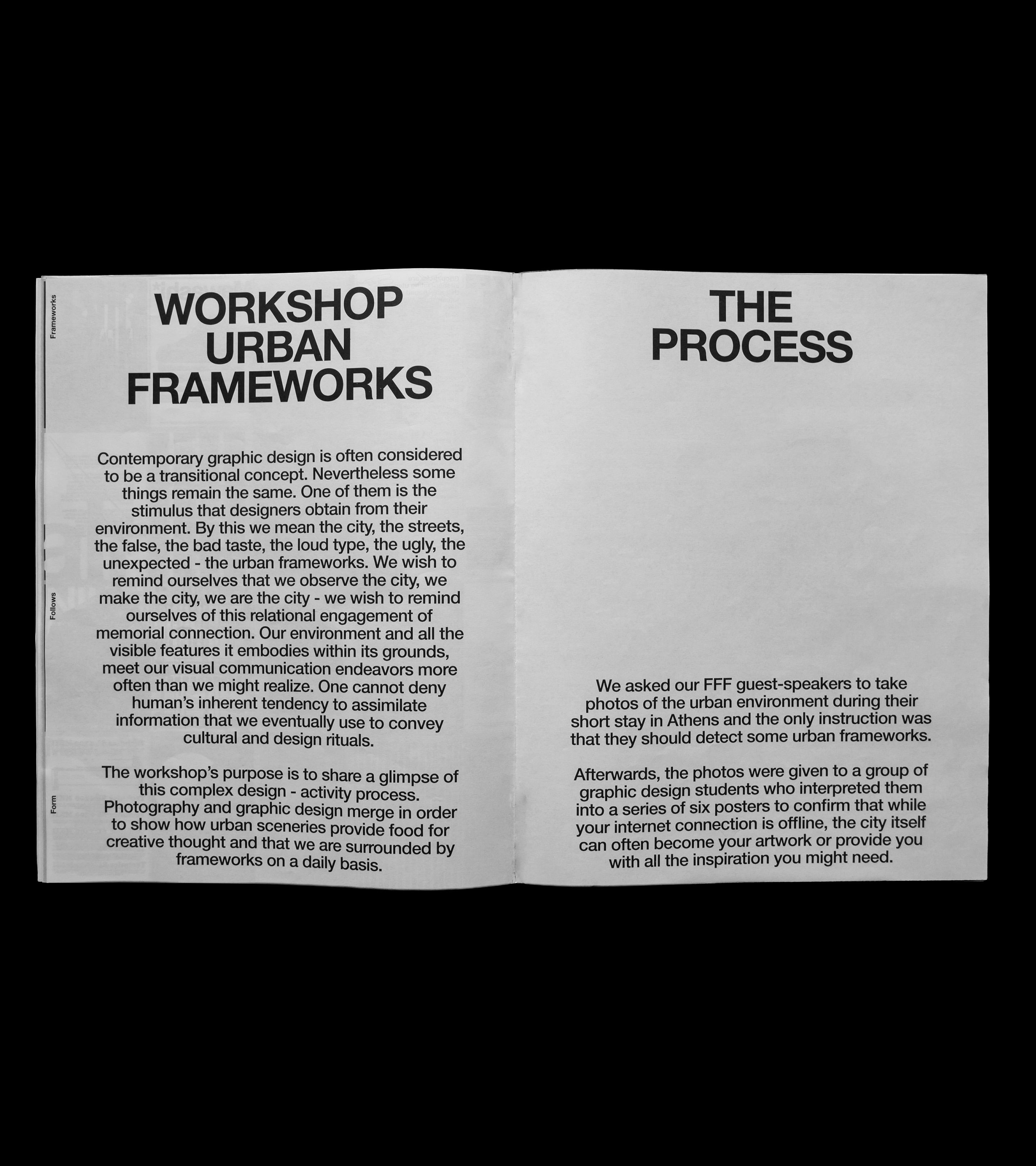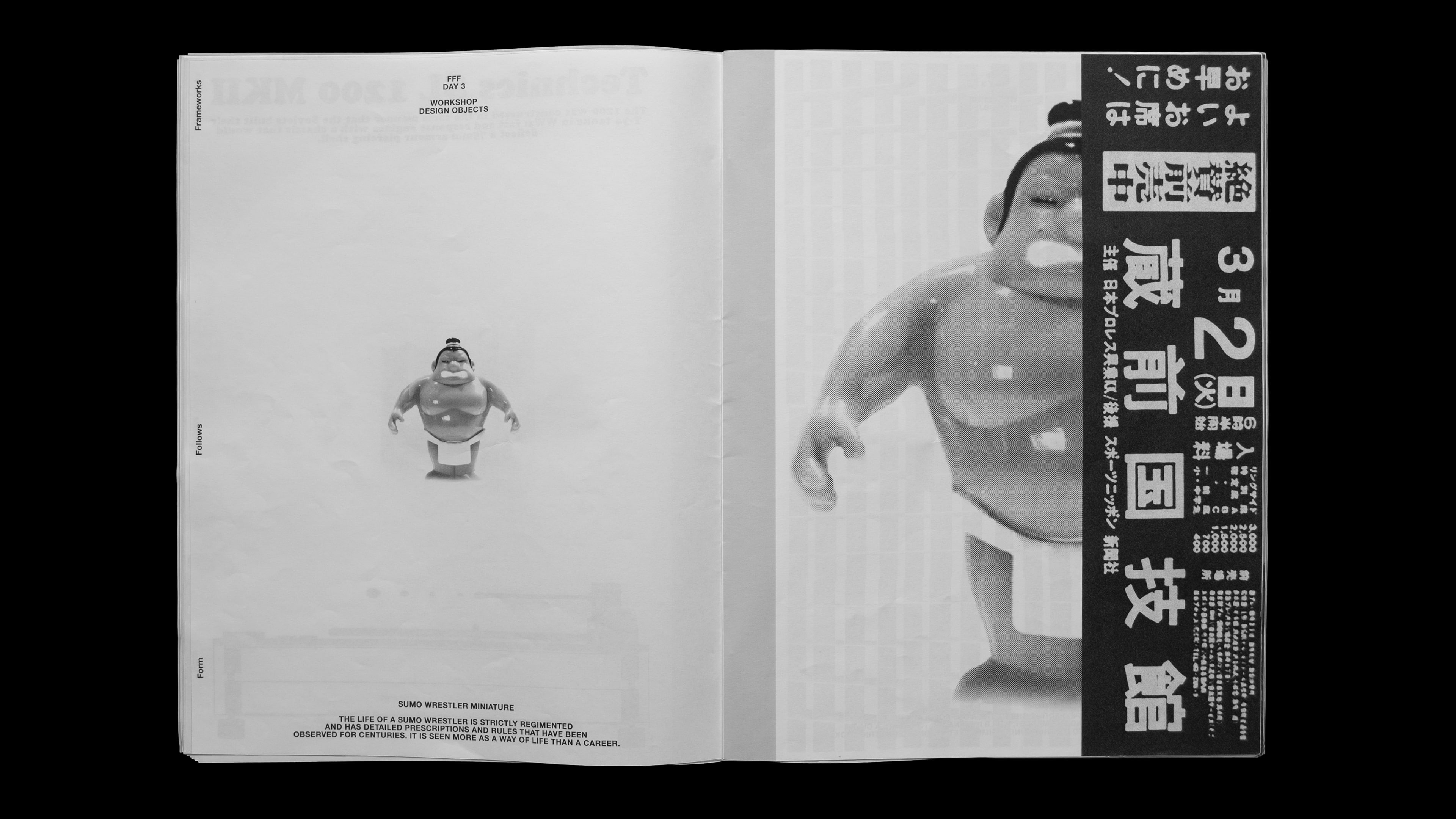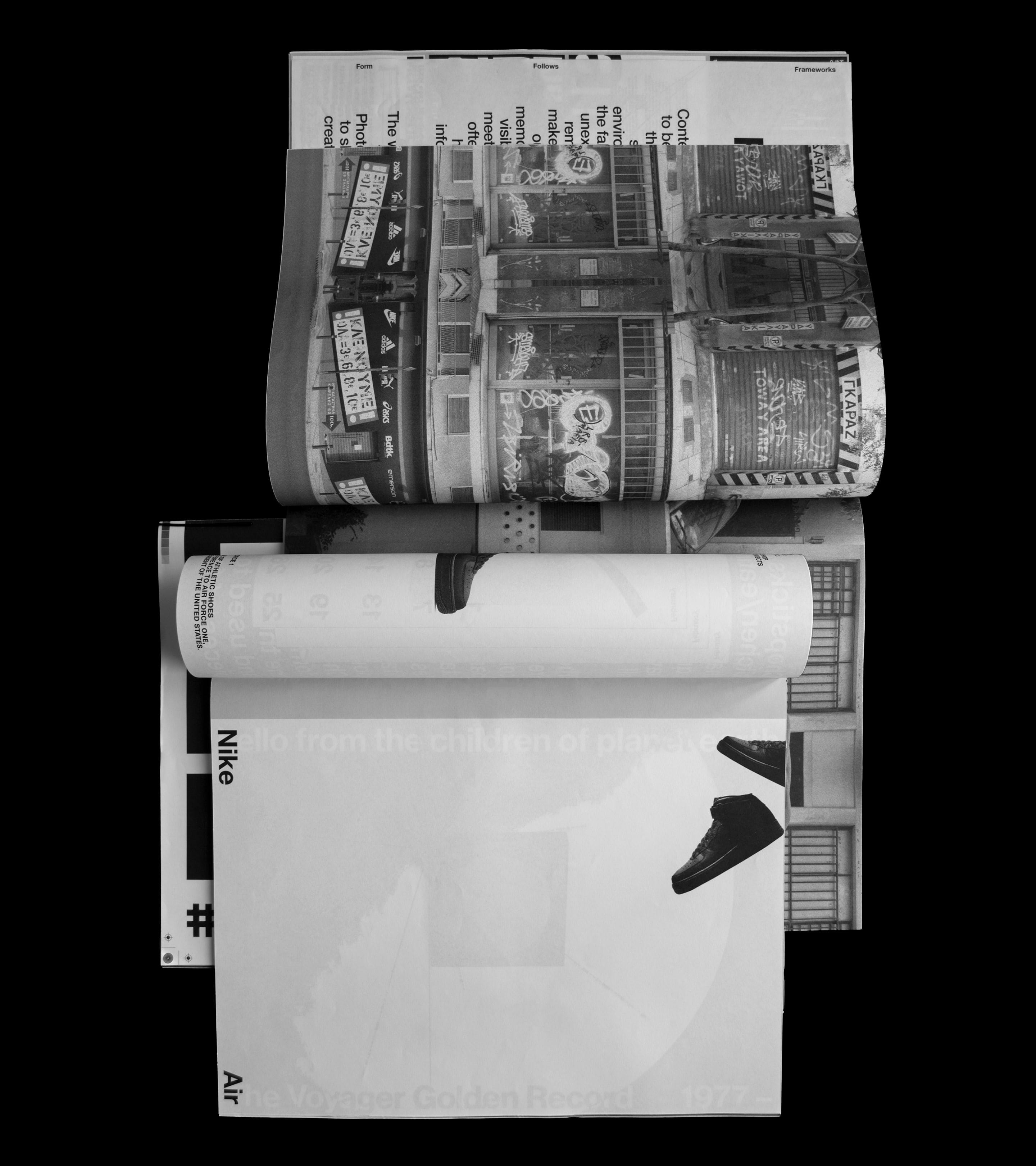 Produced as a large, newspaper-scale editorial piece, the publication prioritizes physical presence and image-led storytelling. A black-and-white system, open page structure, and controlled use of contrast and white space allow the material to breathe. Typography remains restrained and purposeful, supporting the content and bringing diverse visual outputs into a clear, cohesive flow.